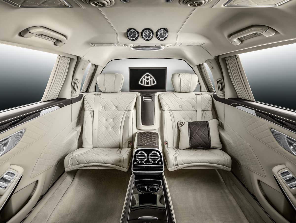 | 採2+2+2配置的Pullman版本,由於車長比一般Mercedes-Maybach多出1053mm之譜,因此車室空間足以打造後兩排乘客都能自在伸腳的寬敞環境。 |