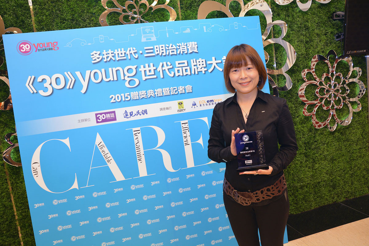 連續5年,由國內知名的遠見‧天下文化事業群旗下《30雜誌》所舉辦的「Young世代品牌大調查」,針對抽樣1,068份25~44歲年輕族群進行最想擁有品牌消費調查,並於日前公布最終調查結果,Audi再度於眾多汽車品牌中脫穎而出,連續2年榮獲生活類別中,消費者「最想擁有品牌」汽車項目中的第一名殊榮,這顯示Audi汽車所代表「進化科技‧定義未來」的品牌認同度在瞬息萬變的年輕消費市場受到肯定,更代表Audi多年來深耕台灣市場的成果及品牌領導地位!