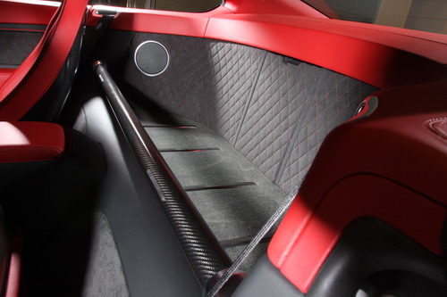 | 火紅色真皮內裝搭配碳纖維飾板,充滿濃郁的賽車風味。 |