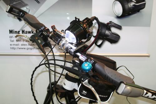 由國內廠商針對單車騎士所開發的35W HID,相較一般低瓦數的輸出功率,這套燈組利用高效能鋰電的輔助下能維持2小時的使用時間,無論照射範圍與角度都能克服夜間照明不足的困難,國內預計5月中販售,而售價將落在1萬元大關之內。