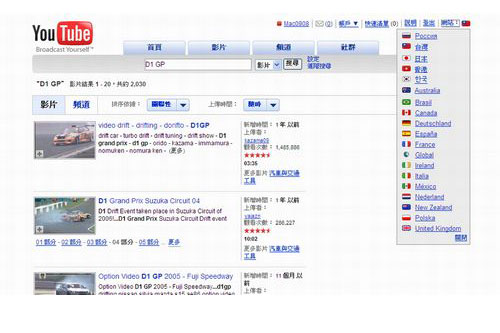 只要輸入關鍵字,幾乎就能找到你要的影片。例如Key入「D1 GP」搜尋,馬上讓你見識日本D1車手白煙番長的實力,猴Hi呀!