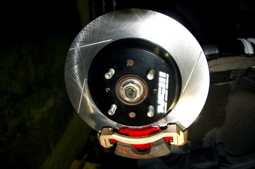 這次所試用的產品是MSR 286mm加大碟,原本我的三門小喜美上的原廠碟盤直徑實在過小,稍微開快一點急踩根本無法提供足夠的煞車力道,在路上可以說是相當危險。經過編輯聯絡後來到高雄「威勝」汽車進行安裝,在老闆阿雄的巧妙施工下完成安裝,過程不到20分鐘就搞定。老闆告訴我,由於這組全新的加大碟必須經過300~500公里的磨合後才能發揮出最好的效果,在尚未磨合完畢前千萬別開太快或大腳煞車。