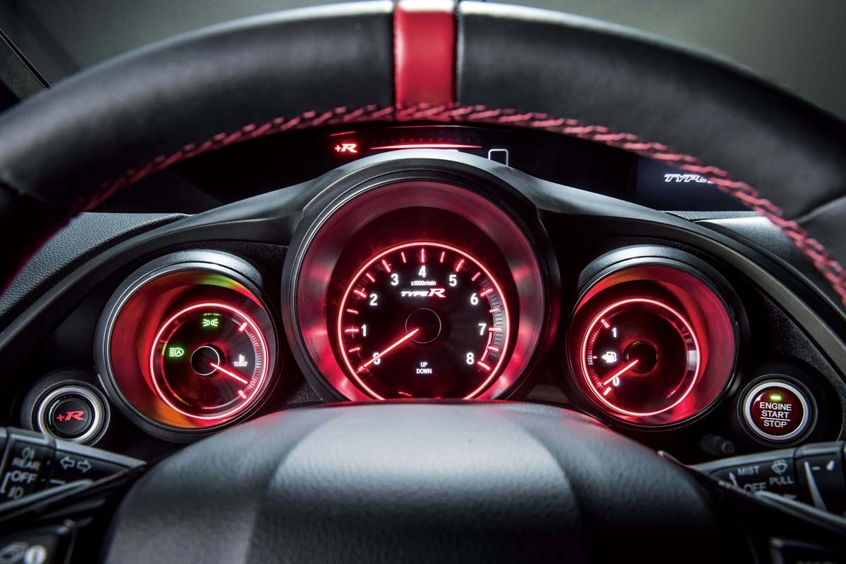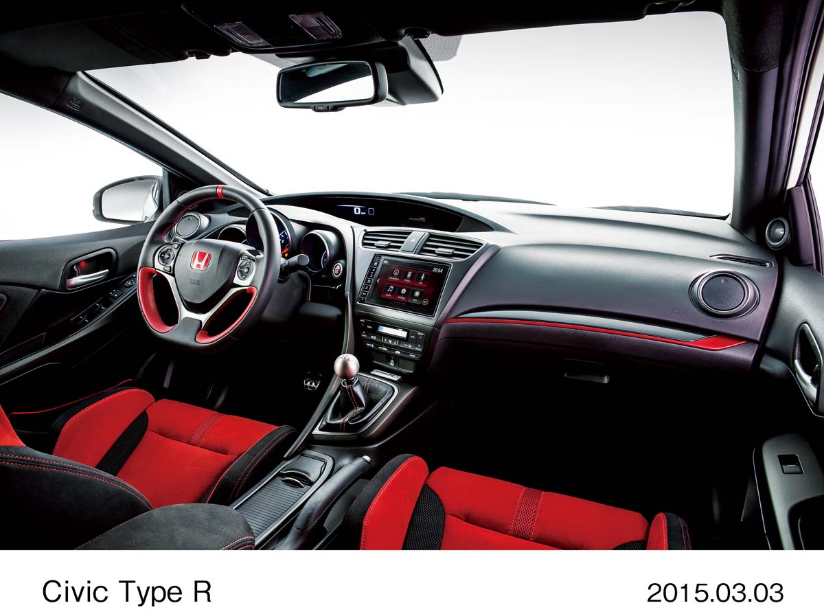 內裝部分乃採Type R車系傳統的紅/黑雙色調設計,來營造強烈性能的車艙氛圍,如此再搭配繡有Type R字樣的桶型賽車麂皮座椅、三幅平底式跑車化方向盤與六速手排圓形排檔頭與金屬踏板等,徹底打造出性能鋼砲的熱血氣息。此外,原廠亦提供有GT套件組供選擇,包括感應式頭燈/雨刷、雙區恆溫、紅色內裝照明燈、衛星導航、320瓦功率的高級音響以及碰撞警示系統、車道偏離警示裝置與盲點偵測警示系統等。
