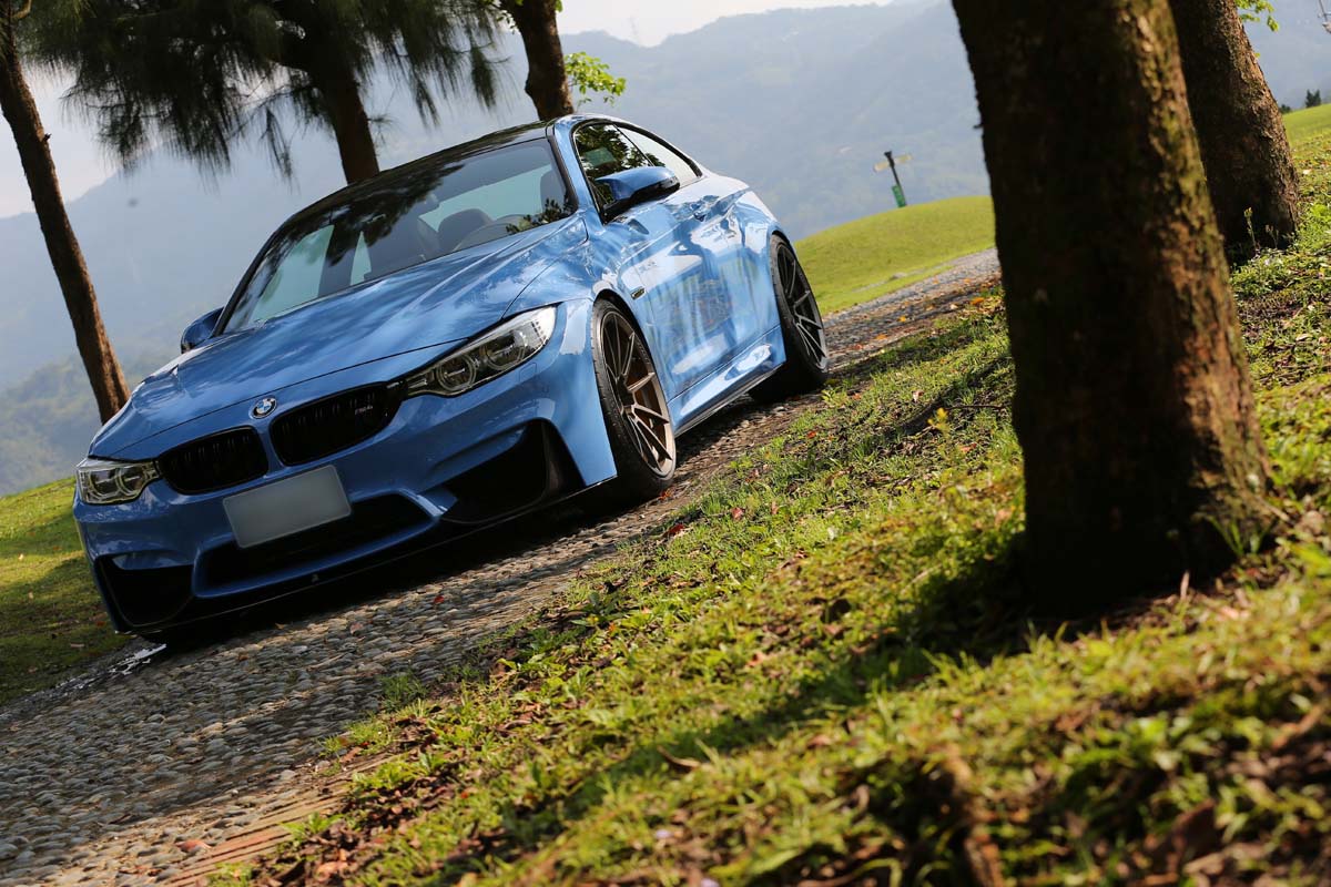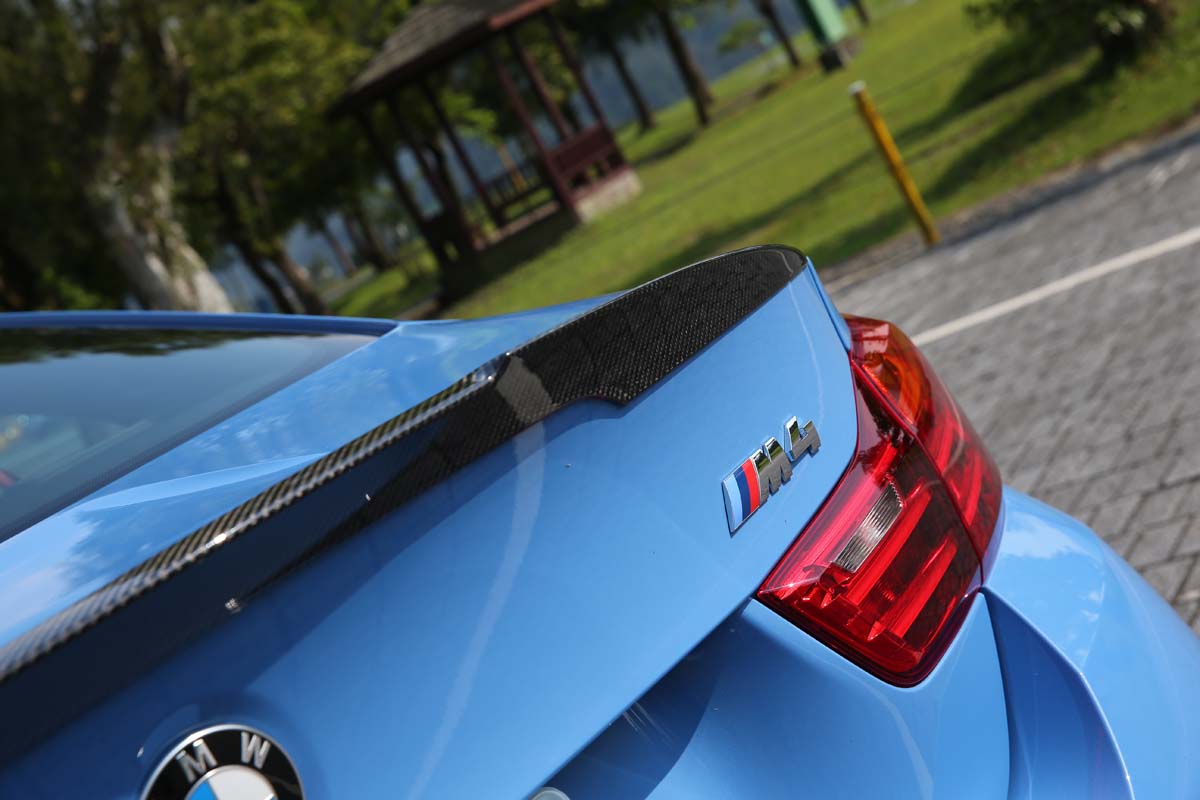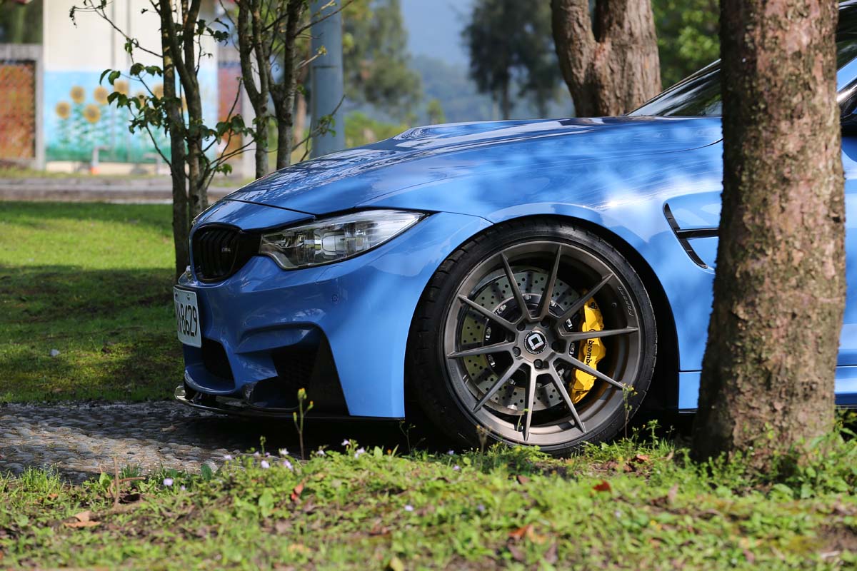 配合高性能M4的外觀造型,為了追求車身線條更具侵略氣勢的運動感,車主除了選配BMW Performance外觀與內裝,搭配上Akrapovic中尾段排氣管及碳纖維下擾流讓整體外觀能一致性,底盤方面,除了受朋友邀約升級KW Clubsport 3 Way避震器作為下賽道使用的秘密武器之外,為了能夠擁有與其他輪圈品牌不同的造型,特別委託Klassen iD訂製獨一無二的M10R 20吋鍛造圈,十幅細爪造型配上消光褐色雖然看似低調,但是隱藏其中的Brembo GT前六後四活塞卡鉗與380mm盤,除了高反差配色凸顯性能之外,所提高的制動力更有助於激烈操駕。
