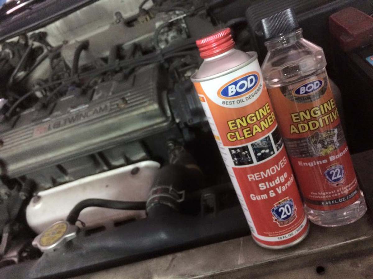 BOD 2合1引擎排汙劑&引擎保護劑套裝,透明那罐為保護劑,因此在換機油前先將排汙劑倒入引擎中,讓它將引擎內的汙垢清洗掉,發動約7分鐘後再讓引擎冷卻5分鐘讓雜質沉澱下去方便卸除,接著換上新機油後再加入保護劑,實際上路引擎的噪音變得相當小,且低速轉速開始的加速力道也比較強烈,彷彿又回到20多年前剛帶它回家的蜜月期了。