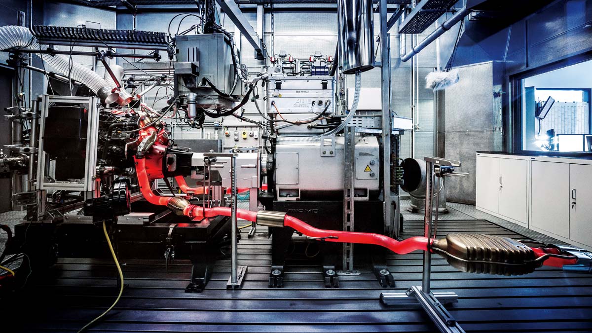 | AMG引擎賣力工作的景況就在測試室的門後。 |
