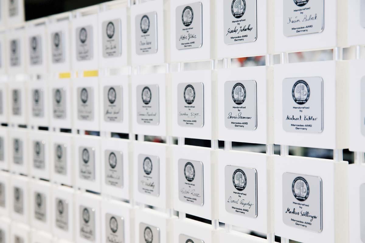 雖說引擎技師簽名的典故只是一開始兩位創辦人無心之舉,但這個在引擎室裡的簽名卻成為AMG一直沿用至今的儀式之一。我們在AMG的生產線上,看著每一位老練的技師從無到有開始組裝AMG引擎,每個技師的動作都熟練而快速,以一種非常準確的節奏組裝著引擎,參訪過程我們雖然無法仔細地從頭到尾看完一具引擎的組裝,但也被技師的專注力所感染。