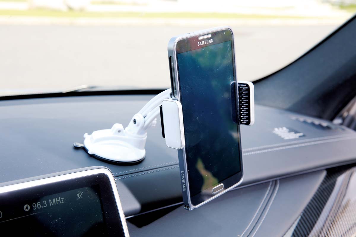 智慧型手機的普及讓人們對智慧型手機相當依賴,多功能的特性更能用來當作行車紀錄器或衛星導航機,不過在車上使用其功能時勢必要有手機架與充電器,才能確保有充足電量之固定位置。