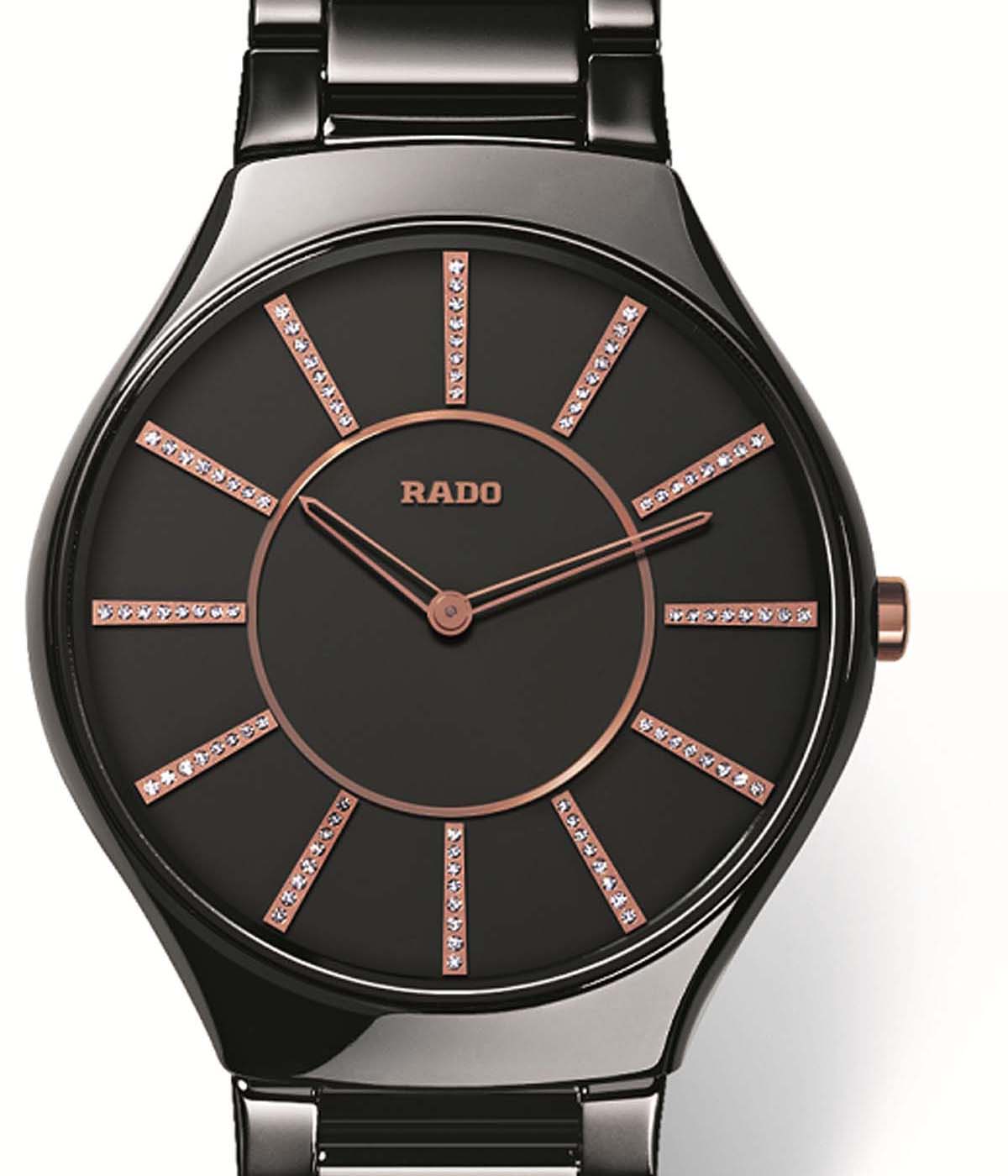 True Thinline真我系列是全球首創厚度僅4.9mm超薄陶瓷腕錶,挾其前衛新潮的頂尖設計成就,引領超薄時尚風潮,2011及2012年分別獲得Good Design Award設計大獎殊榮以及紅點設計大獎(red dot design award)等二大獎項肯定。而35克極輕重量讓人輕鬆甩掉腕錶的厚重感,舒適緊貼於手腕,展現時尚輕盈姿態!錶盤特殊的鑽石時標閃耀玫瑰金光芒有如沉浸在愛情的光輝中,鏤空指針的運轉更是全然呈現珍貴的點滴時光。