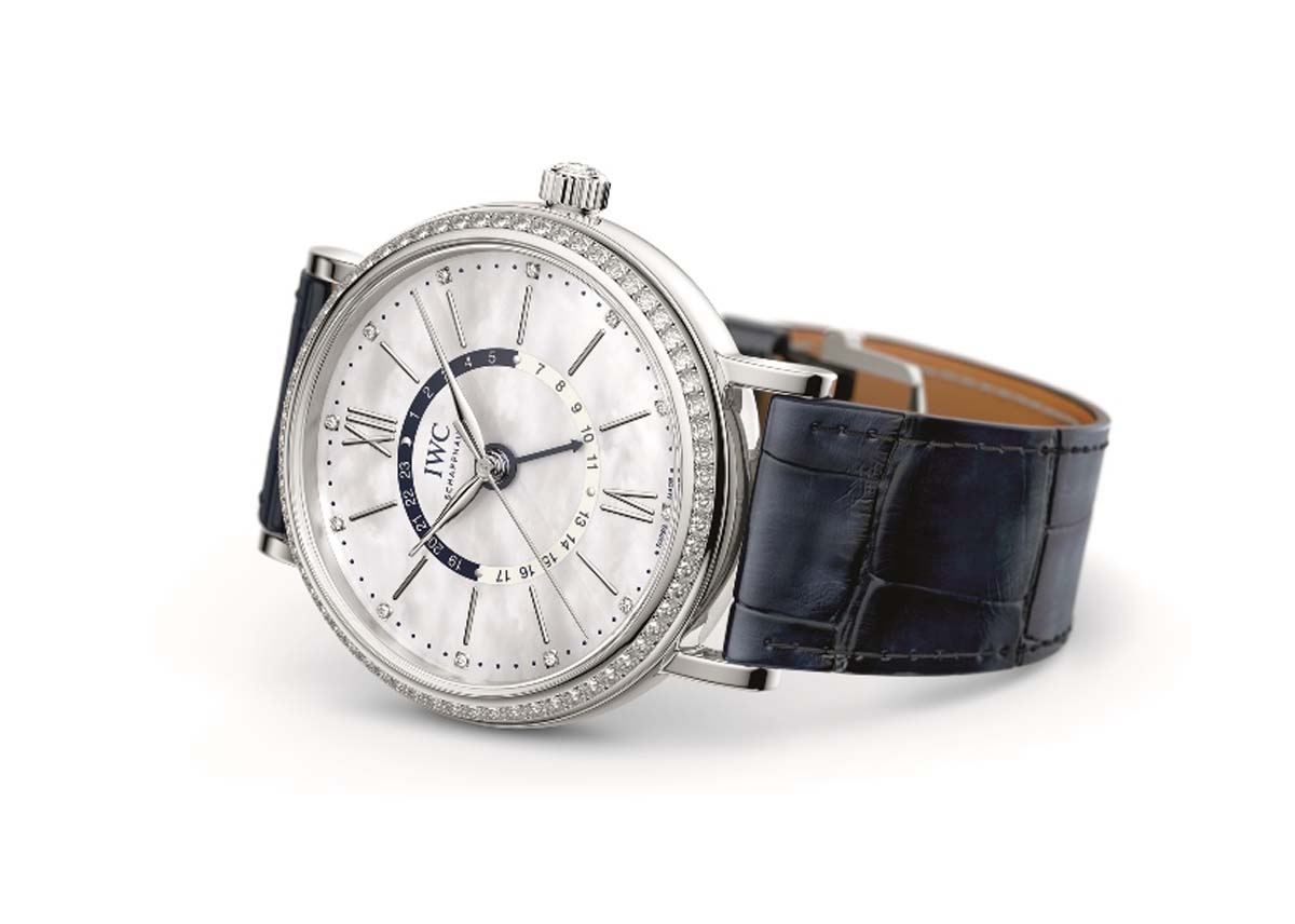 IWC萬國錶傾情推出的全新柏濤菲諾中裝腕錶系列,對精巧情有獨鍾的腕錶愛好者來說極具吸引力。柏濤菲諾中裝月相自動腕錶和柏濤菲諾中裝日夜顯示自動腕錶光彩照人,完美輝映義大利沿海小鎮柏濤菲諾永恆的優雅魅力。其中,DAY & NIGHT自動上鏈腕表,除精鋼錶殼鑲嵌66顆鑽石,白色珍珠貝母錶盤亦有12顆鑽石,深藍色鱷魚皮錶帶,精鋼針式錶扣等更讓人傾心。