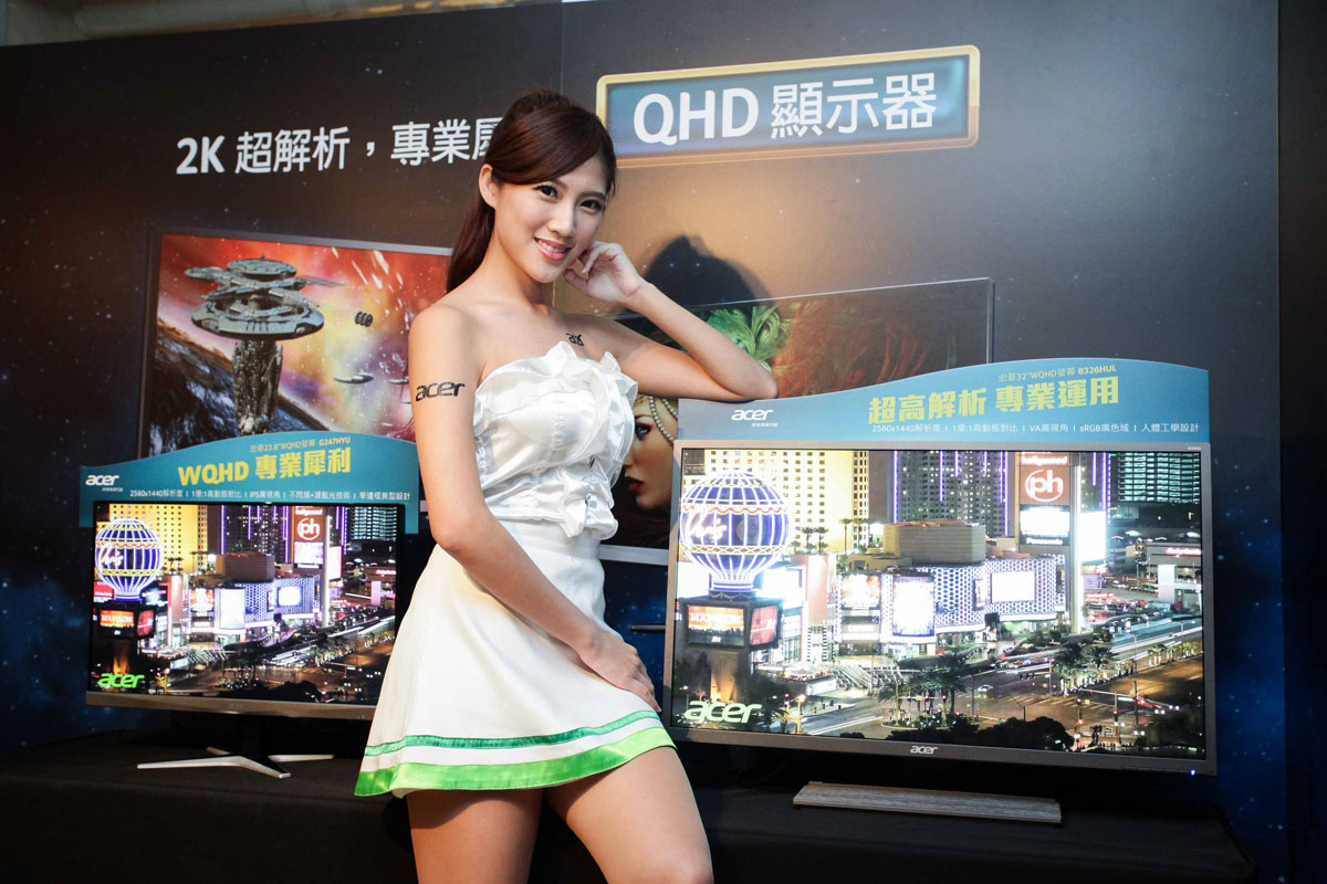 此外,針對如中小企業或SOHO工作者,28吋的宏碁CB280HK是絕佳的4K入門款選擇,擁有多元化的連接埠,包括DVI/MHL/DP/Mini DP,適合商業展示及遊戲用途,十分便利,連接方便,大幅提升工作效率,售價21500元。而針對空間較為侷限的場域,宏碁更推出業界少有23.8吋支援2K螢幕解析度的機種-G247HYU,具不閃頻、濾藍光技術及窄邊框的美型設計,售價約1.3萬元。