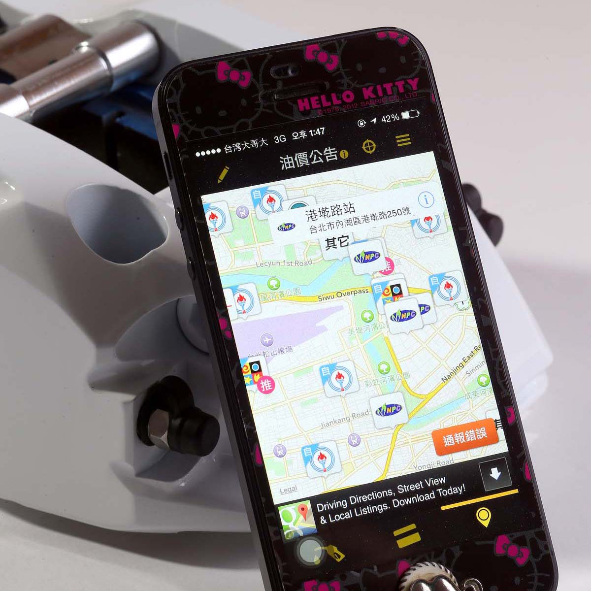 點擊地圖上的加油站圖示,可以取得加油站相關資訊。