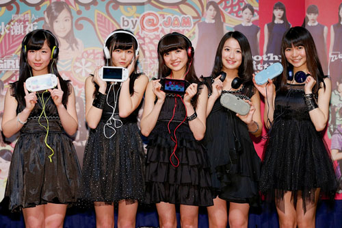 在表演中,電波組.inc與東京女子流手上拿著全新的、許多玩家最夢寐以求的『PlayStaion® Vita』,流線型的機身設計,除了有基本款的黑、白兩色之外,對於喜愛電玩的女孩們也推出粉嫩的新色,包括:青檸/白、淺藍/白、粉紅/黑以及卡其/黑,就是要擄獲女孩玩家的目光!『PlayStaion® Vita』,不僅外觀俏麗,內裝更是堅強,配備1GB內置記憶卡及5吋LCD,厚度及重量比先前的版本更減少20%及15%,讓年輕人可以輕輕鬆鬆走到哪玩到哪!