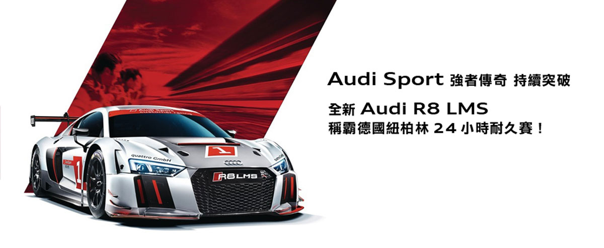 受到全球賽車迷高度關注的紐柏林24小時耐久賽(Nürburgring 24 Hours)於日前精彩落幕,由四環品牌全新打造的Audi R8 LMS GT3賽車不僅成功征服「綠色地獄」,更以40秒的領先幅度超前對手強勢封王。這場賽事不僅是全新Audi R8 LMS GT3賽車繼全新R8發表三個月後首座桂冠,更是四年內Audi 於此賽事中獲得的第三座冠軍,除了延續Audi Sport所強調之高性能與運動化的品牌精神之外,亦完整展現出四環品牌在賽車科技研發領域的強悍實力。