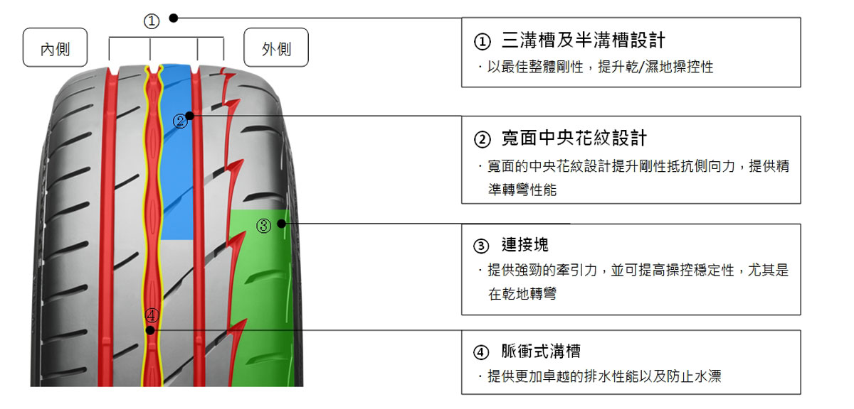 POTENZA品牌是普利司通最先進技術、歷經各種汽車運動洗禮的運動性能胎系列,新發表POTENZA Adrenalin RE003提供比前代商品RE002更為精確的極限操控性能,良好的的乾濕地抓地力、更為舒適優越的轉向感及過彎穩定性。