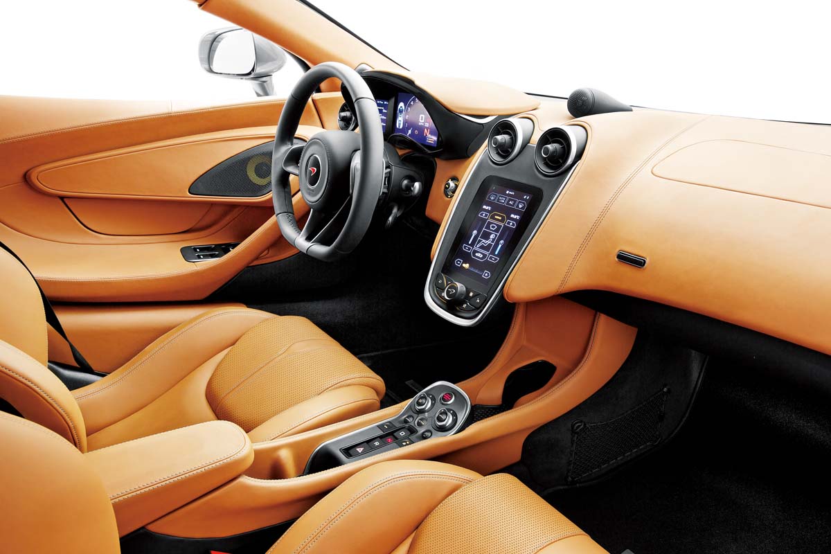 車艙空間內,570S也表現出McLaren針對旗下新車的銳利進化。除了儀錶板採用全彩液晶顯示幕加以取代外,中控檯也導入了大型觸控螢幕來控制多媒體影音系統、空調、藍牙串流以及導航系統等項目,整體中控檯造型則變得較為圓潤且優雅,一改先前車款的劍拔弩張,但搭配跑車化真皮座椅和三幅式運動方向盤,卻又不失高性能車種應有的競速風格。
