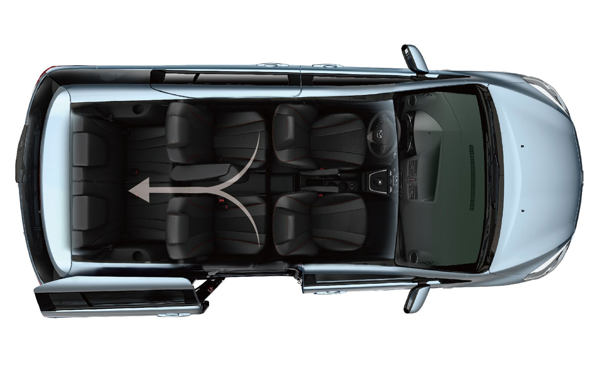 致力成為台灣消費者最佳家庭轎旅選擇,中規車型搭載同級距唯一電動雙側側滑門,無論窄巷或狹小車位,乘客仍能輕鬆啟閉車門。