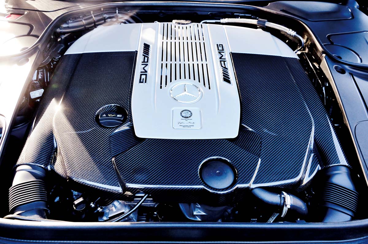 另外,為符合現今最新的歐盟EU6環保排放標準,點火系統也換上最新的多重點火每缸雙火星塞系統,進氣冷卻器順應科技趨勢使用水冷式裝置,可提供更高的散熱效率並將體積縮小,還有智慧型的發電機控制介面讓引擎運轉時的負載減至最低程度,這些進化工程的結合,繼而讓這具6.0升V12渦輪增壓引擎可爆發出630匹的最大馬力,而高達102.0kgm的峰值扭力在2300rpm就能夠爆發並延續至4300rpm,讓S65 AMG僅需4.3秒就能夠完成0~100km/h加速,極速被刻意限制在250km/h,據AMG工程師表示,若將速限解除,要突破300km/h輕而易舉。