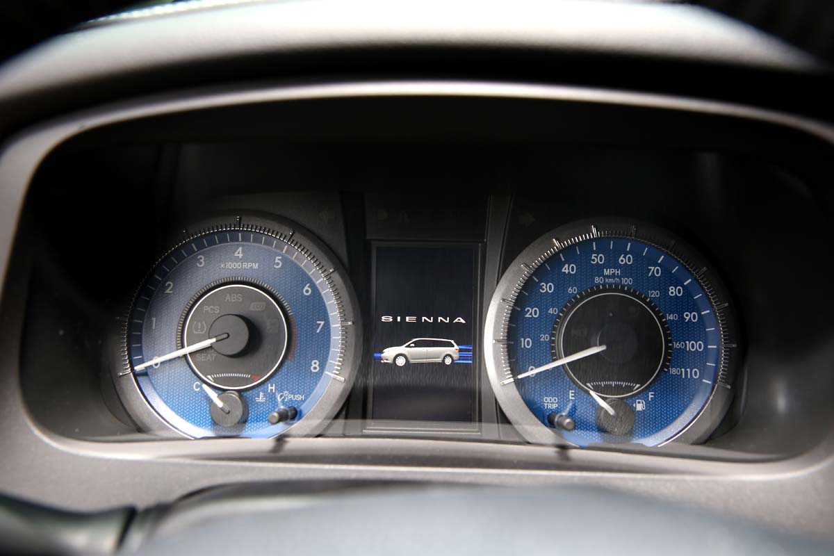 | 儀錶板是此次改款最大的不同之處,不僅改為雙圓儀錶,中間還增加多功能顯示幕,開機時螢幕中的Sienna會轉180度然後消失,實在創意十足。 |