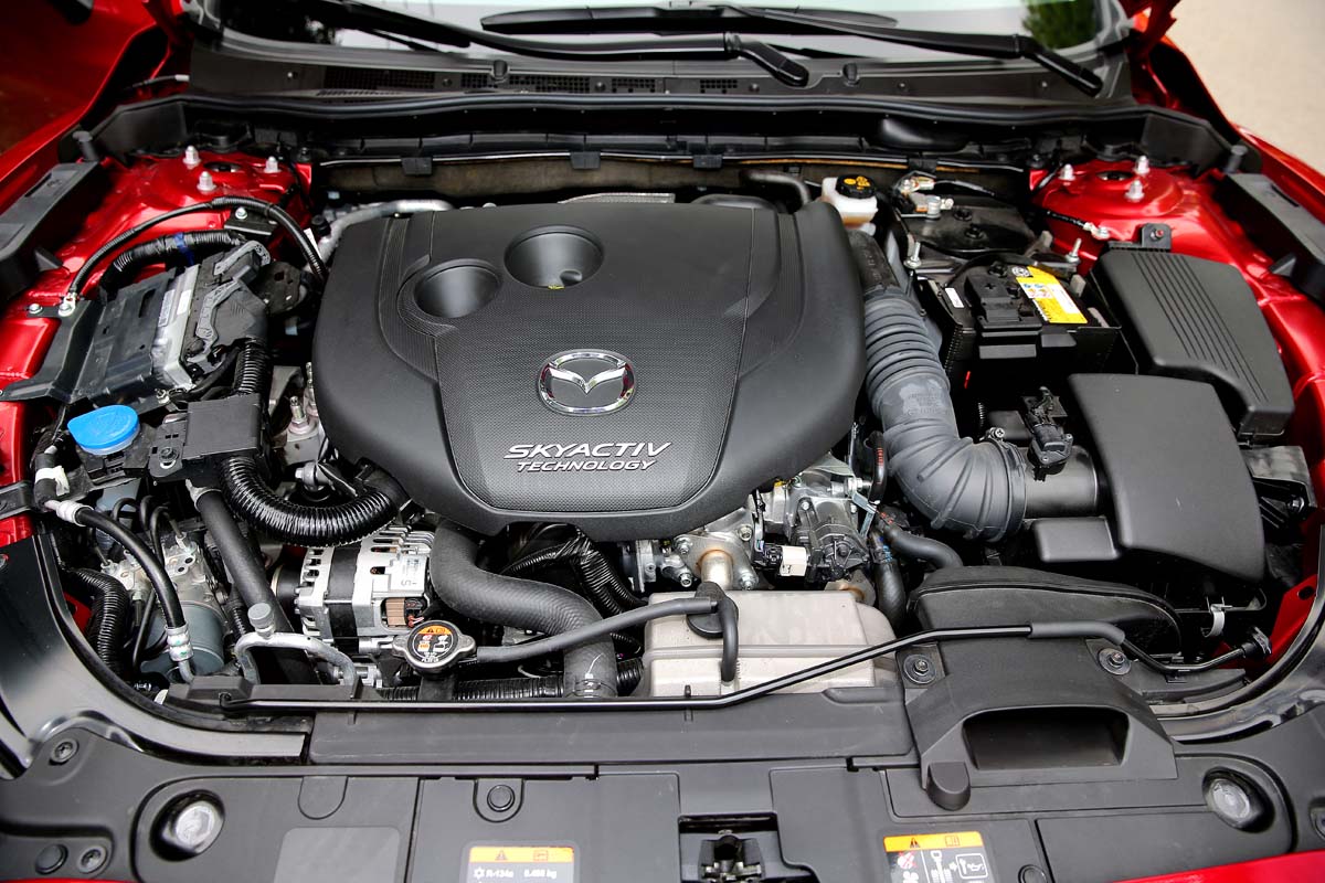而這具Skyactiv-D柴油引擎,在86×94.3mm缸徑x衝程設定下,將排氣量設定在2191c.c.,在雙渦輪串聯的輔助下,壓縮比可以設定在柴油引擎偏低的14.0:1,利用渦輪增壓來創造壓縮比,因此可創造出較同級距更厚實的扭力,實際上路可發現這顆引擎將油門踏到底其實不會比較快,只要稍微將油門踏深一點就可以享受到持續不間斷的推力,踏下油門因為變速箱自動降檔拉轉的關係,相反的柴油引擎的扭力精華區似乎也被跳過,所以駕馭方式就只要放輕鬆就能很快。