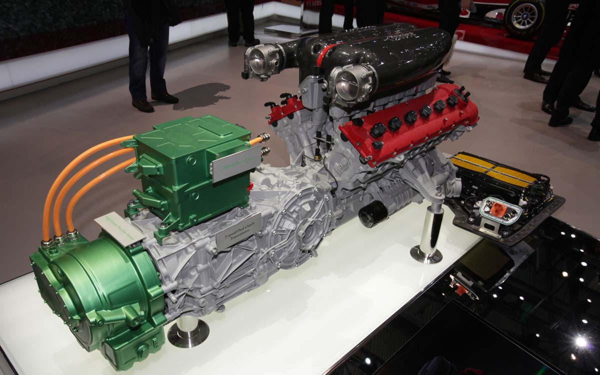 | LaFerrari的動力系統,由一具實際排氣量6262c.c. V12自然進氣引擎,和兩組電動馬達所組成,引擎可輸出800hp/71.4kgm最大性能,加上HY-KERS電力系統的動力後,綜效最高動力則可達963hp/91.8kgm,0~100 km/h少於3秒、0~200 km/h少於7秒,且0~300公里也只需15秒,極速則超過350km/h。 |