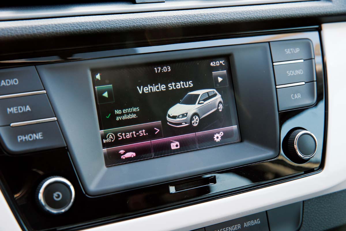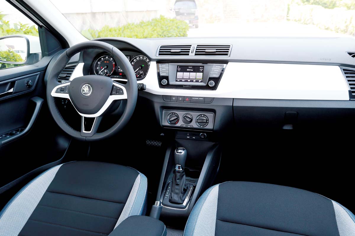 在車型定位與家族設計風格及價格等因素下,Fabia座艙並沒有著讓人驚豔之感,不過透過儀錶平台飾板與方向盤等處輔以白色飾板鋪陳,搭配牛仔布紋座椅,營造出明亮活潑且討喜的感受,更符合Fabia年輕化的訴求。中控所配置的5吋觸控螢幕具有藍牙、外接音源與車輛設定等功能,但欠缺車顯影及圖像為較可惜之處。至於安全方面,以不到80萬元售價便可享有六氣囊、動態穩定、循跡防滑、XDS……等多項配備實屬相當超值。