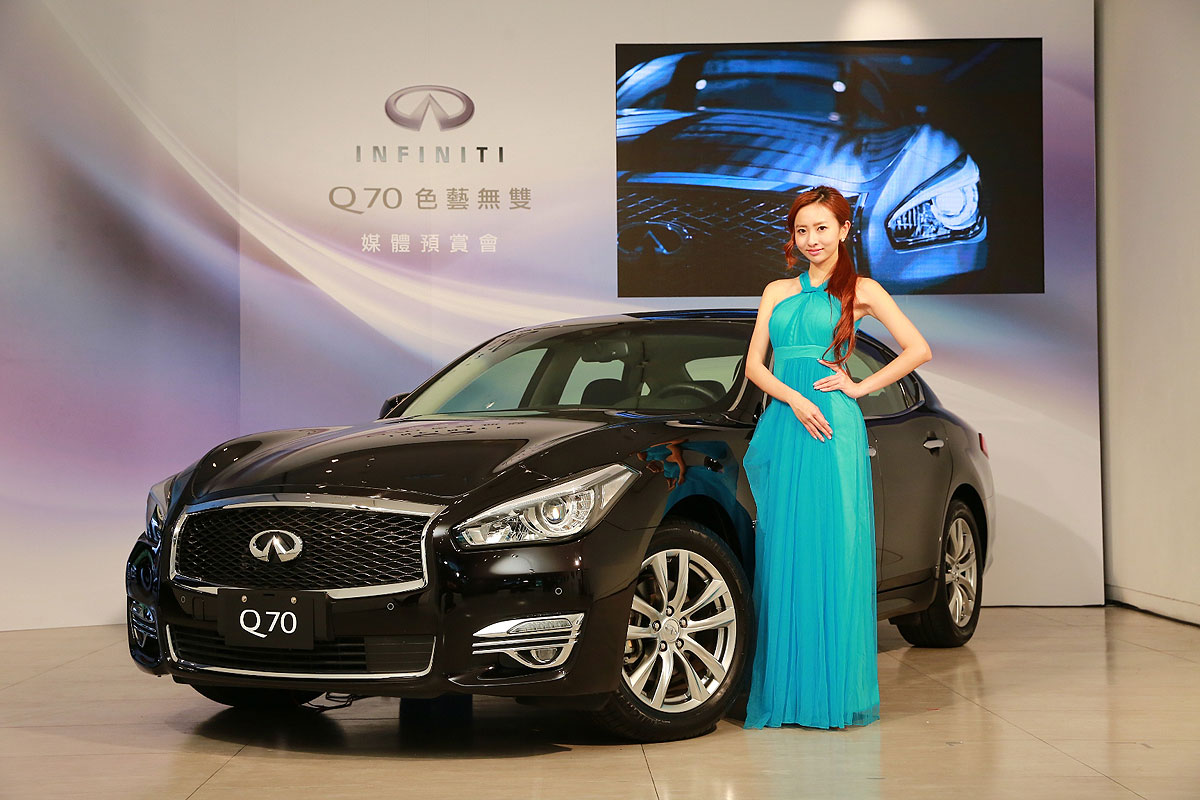 New INFINITI Q70自2014年9月北美率先上市以來好評不斷,不僅獲美國IIHS評選為最佳安全首選 (Top Safety Pick+)(註1),更以唯一日系車之姿,榮獲美國消費者雜誌Consumer Reports榮獲2014十大好車(註2)。細膩性感的絕美外型及體貼入微的精緻內裝更是New INFINITI Q70精心營造的絕色風景。千呼萬喚, INFINITI Taiwan於2015年6月24日假台北寒舍艾美酒店舉辦媒體預賞會,現場以藝廊概念感性展演New INFINITI Q70「色藝無雙」,並宣佈即日起以預售價新台幣209萬元起接單(註3),比前一代入門車229萬元大降20萬元。