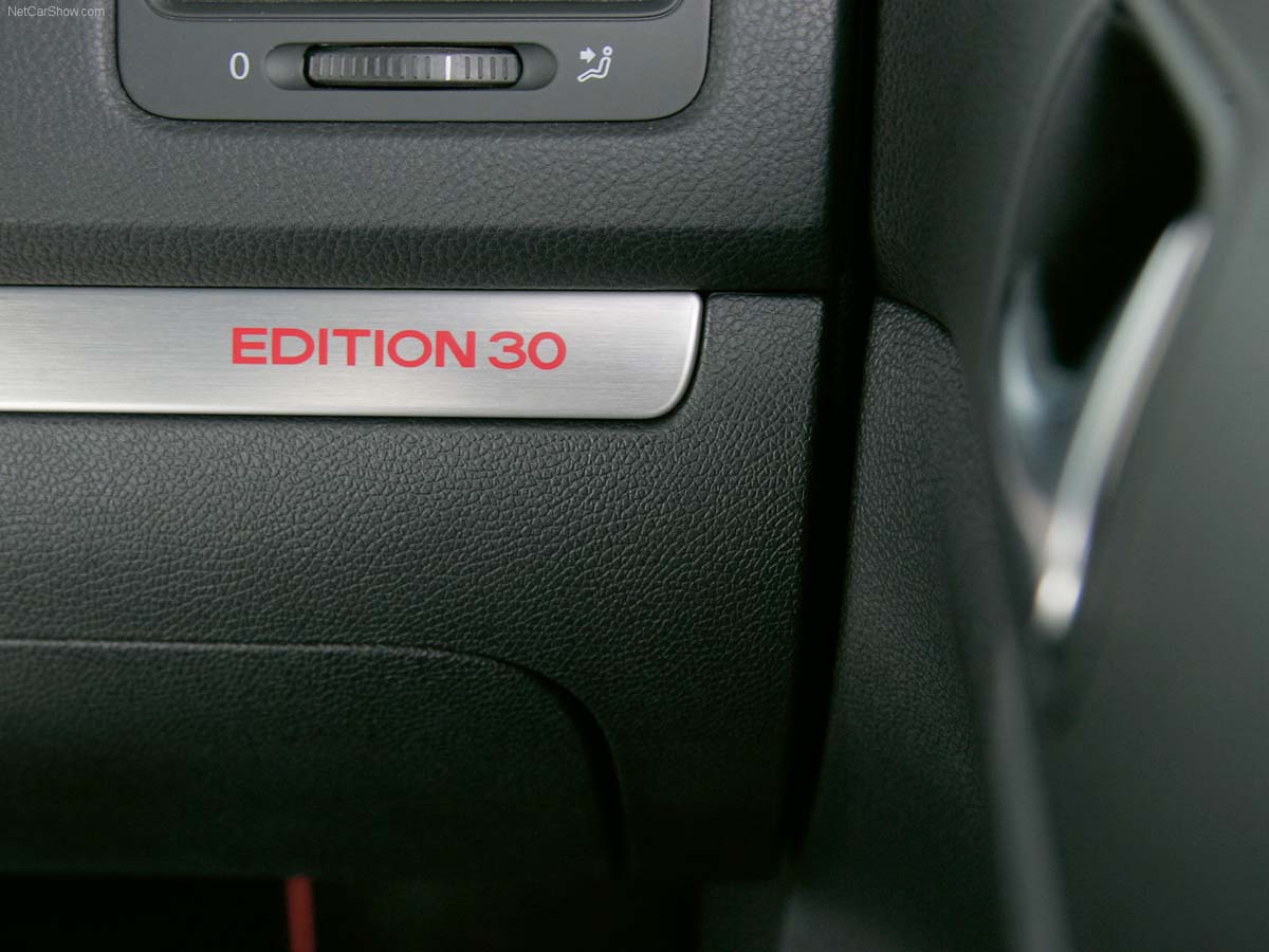 GTI 20週年與25週年車型皆受到熱烈回響,於是Mk5 GTI打鐵趁熱、推出GTI Edition 30。既然是30週年紀念車款,當然會有一些特別設計,例如Votex前下擾流板、R32的後保桿與尾燈等,鋁圈則是搭配18吋BBS製品;此外,Edition 30也針對動力部分進行調校,最終增加30hp馬力到達230hp,搭配DSG變速系統從靜止加速到100km/h只需6.6秒,極速到達243km/h的水準。