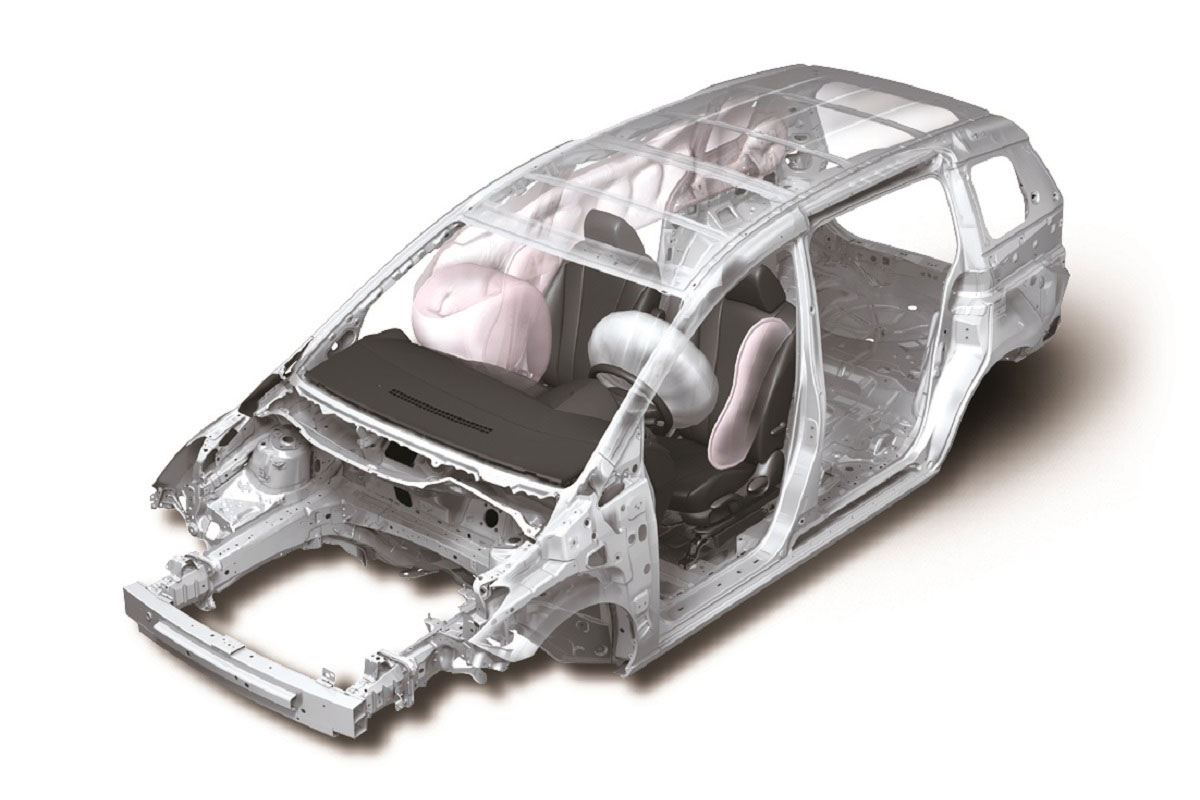 其中最難得的當屬第二排中央座三點式安全帶,以及6具氣囊中的左右車側防護氣簾。後座中央座若為二點式安全帶,遇前方撞擊事故,前衝的加速度力道將可能嚴重傷害中央乘客的腹部。而車側防護氣簾從車頭一路延伸至第三排,側撞時才能保護後座乘客避免直接與撞擊物、車側、玻璃等接觸導致傷害。