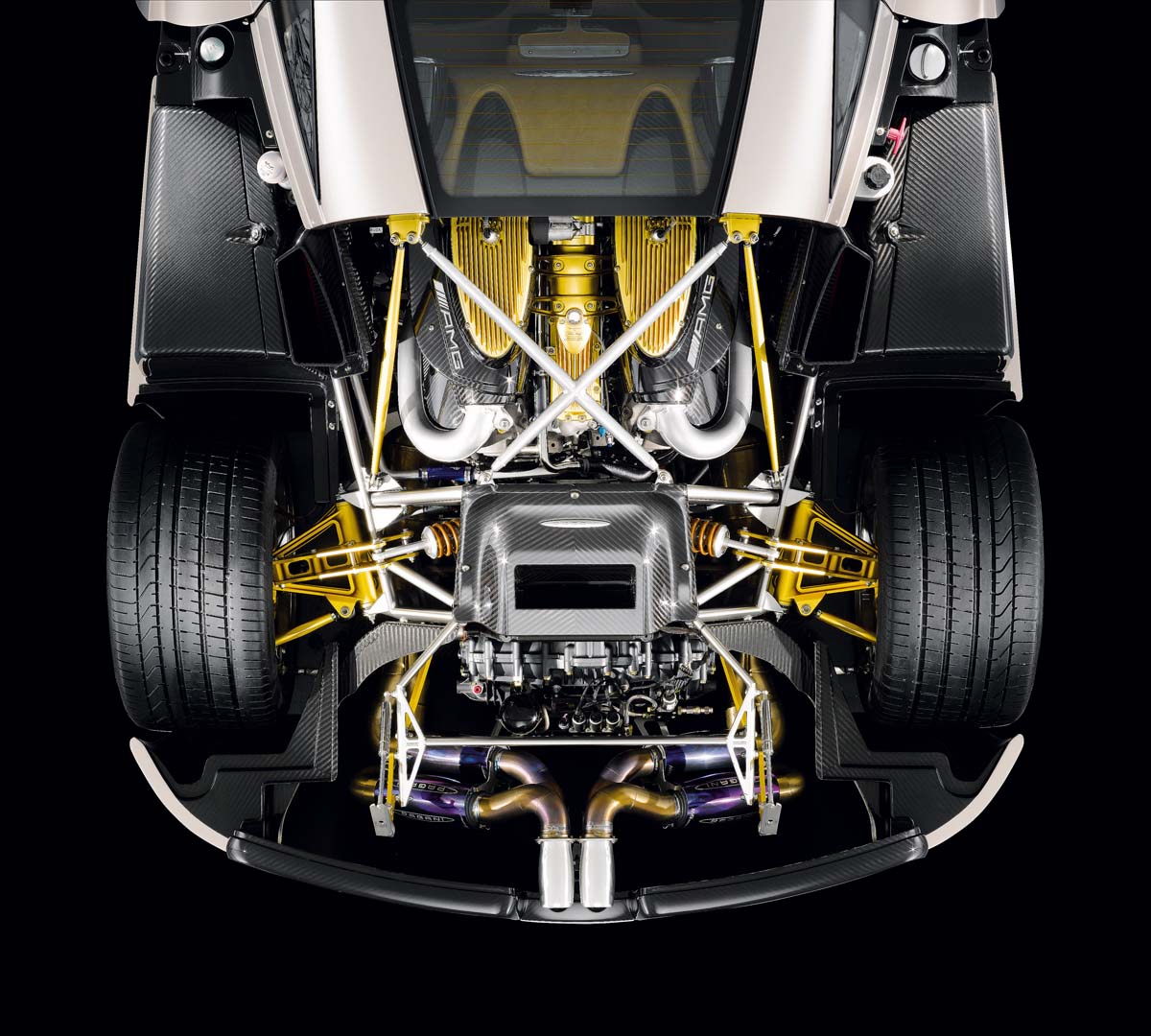 | 引擎採用AMG所供應的M158 6.0升V12雙渦輪動力,可輸出730匹馬力,且為減輕重量甚至將全套排氣管均以鈦合金所製作。 |