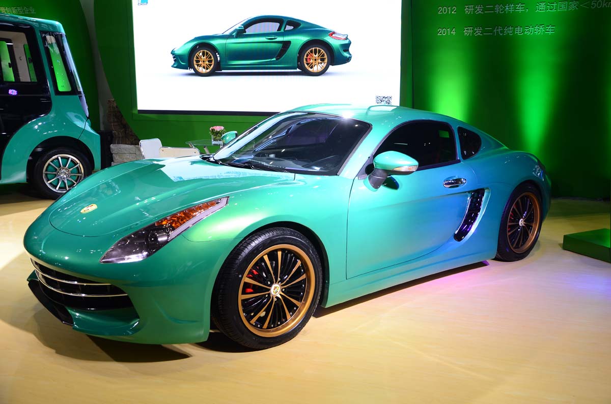在中國車展中總是能讓人感到驚奇,其中在眾多超跑品牌與車款中便藏著一部法拉利與保時捷合作推出的特殊車款──Eagle Carrie。這部Eagle Carrie並非由國際車廠推出,而是由來自蘇州益高電動車所製造產品,之所以會稱為是法拉利與保時捷合作推出的車款,因於外觀造型有著兩家品牌旗下車型的身影,其中於車頭方面與Ferrari F12或458有著相似的神韻,至於車側及車尾便與Porsche Carrera擁有極高的相似度,不僅如此連車名甚至與廠徽皆與Porsche相當類似。