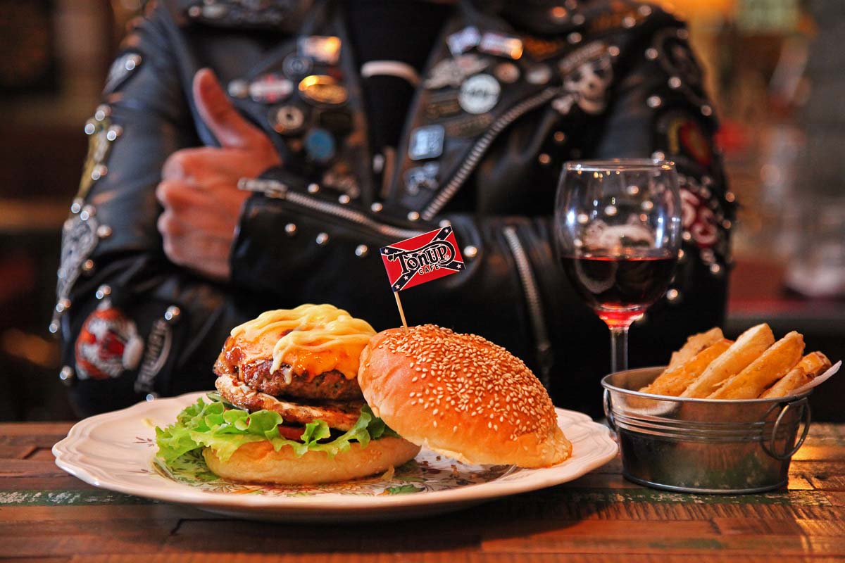 Ton Up Cafe店內的食物更是相當豐富超過100種的選擇,更讓人食指大動,而且店內的醬料更是小宗驕傲的地方,青醬、紅醬不管甚麼醬料通通都是師傅特調出來,完全不使用市面上可購得的現成醬料,因此更可以放心地大快朵頤,晚上來跟朋友聚聚或是下班帶著女朋友來吃個飯,吸收一下50~60年代味道也不錯…