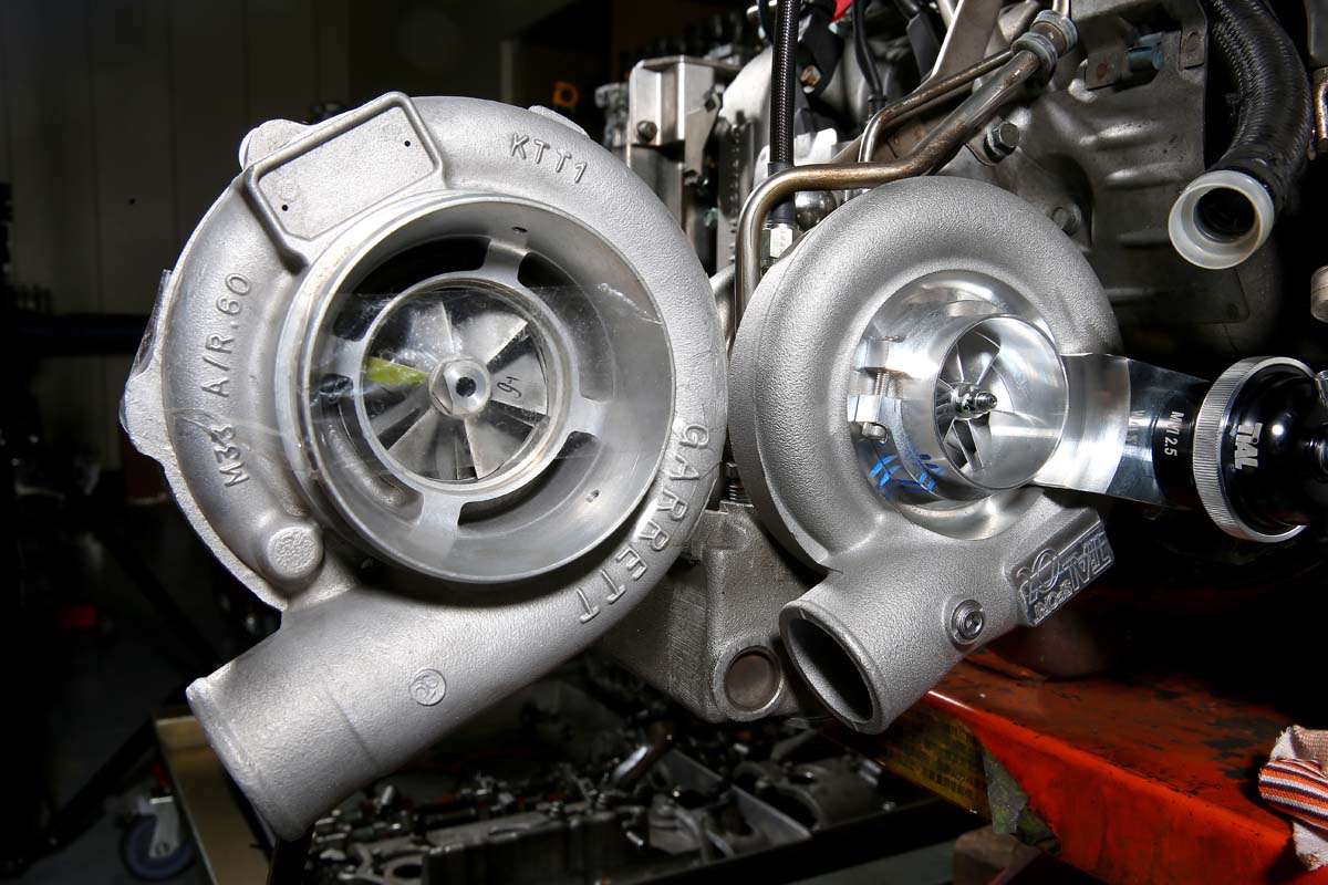 這次黑色996T則是黑桃自己的愛車,Stage2的設定其實也有點測試感覺,因為在國內都沒有人嘗試過這樣的改裝,車輛購入後黑桃先將引擎卸下,在維持原廠腹內的條件下,將一些該更換的耗材全數更換,並且選擇上兩顆Tail專為996T設定的Tail 3076滾珠渦輪機,不過為了要閃躲引擎本體,Tail更換掉了進氣端外殼,這一點也導致了日後動力壓榨上難以跨越的極限,以原廠A/R80的3076渦輪機來說,最大增壓值要打到2.3~2.5bar也不是問題,不過現在進龜縮小後2.0bar已經是渦輪機的最大界線了,排龜Tail則是採用白鐵材質打造,並且搭配鍛造葉片來達到渦輪機本體的輕量化,引擎本體雖然都尚未強化,不過這具原廠引擎當增壓值要超過1.6bar以上,原廠進氣端的T管則是需要更換上強化材質,才能避免原廠塑膠因為較大的壓力導致蹦管問題,整體來說這具引擎就只要改裝這樣就夠了,剩下的就交給黑桃來大展身手。