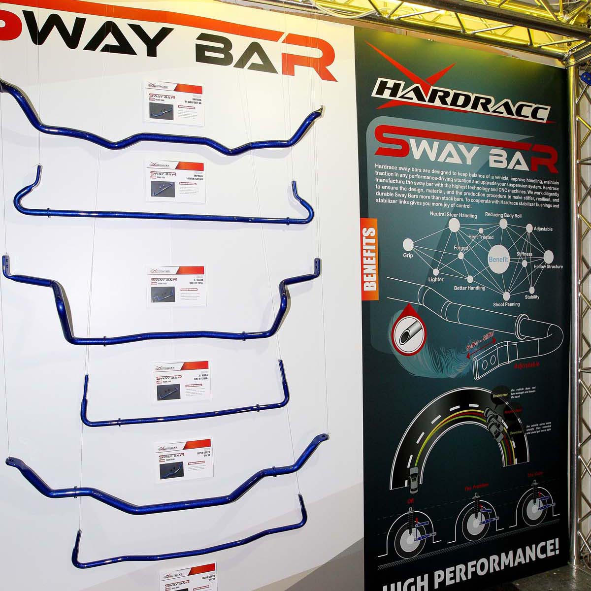 提到HARDRACE,最直接讓人聯想到的就是底盤強化件,藍色底盤改裝品從下支臂、仰角、束角調整器到引擎腳等底盤件一應具全,只要是熱門改裝車型就一定推出對應產品,然而今年特別針對可調防傾桿開發新產品,採用特殊鋼材中空設計,不僅能夠減輕重量負擔並維持一定強度,透過螺絲位置還可調整防傾桿強度。