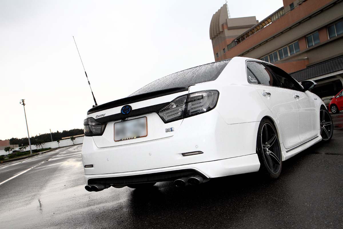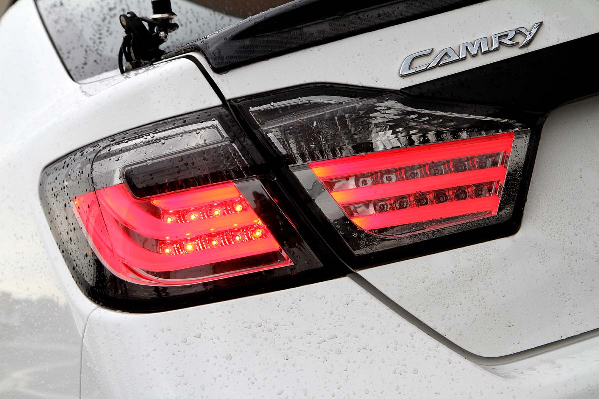 OP短評:這部白色Camry Hybrid車主為了提昇愛車外觀運動氣息,特別加裝了總代理曾發表過的Sportivo版空力套件,而且改裝後的效果還算不錯,價格又比日本進口套件實惠,是預算有限車主的最佳選擇。此外燈組部分也特別用心改裝過,頭燈保留原廠LED燈組,只透過黏貼燈膜燻黑處理,尾燈則已更換透明LED燈組,透過黑白配色方式讓愛車更具殺氣。而採訪時部分車主也告訴筆者,原廠後保桿燈如果進水的話,會很奇妙的影響行車電腦的判讀,導致電腦燈亮起,因此要注意這方面的問題。