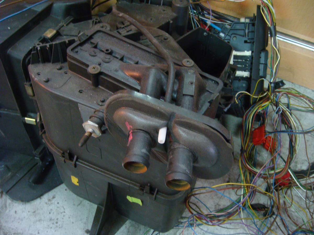 熱水排在中控台內,所以熱水排破損、冷卻液就會流入車內,把地毯掀開會發現地板上濕濕的;跟水箱一樣,熱水排也有其使用壽命,多為七到八年左右,當然有些高級車可以使用更久,這端看熱水排的品質而定;熱水排的更換過程非常繁雜,需要拆下整個中控台才能看得到,合理的施工工時差不多要4~6個小時,此外,熱水排與風箱之間的海綿要記得一併更換,可以確保其氣密性與隔熱效果,才不會後來海綿破損又要再拆一次中控台,非常費時費工。