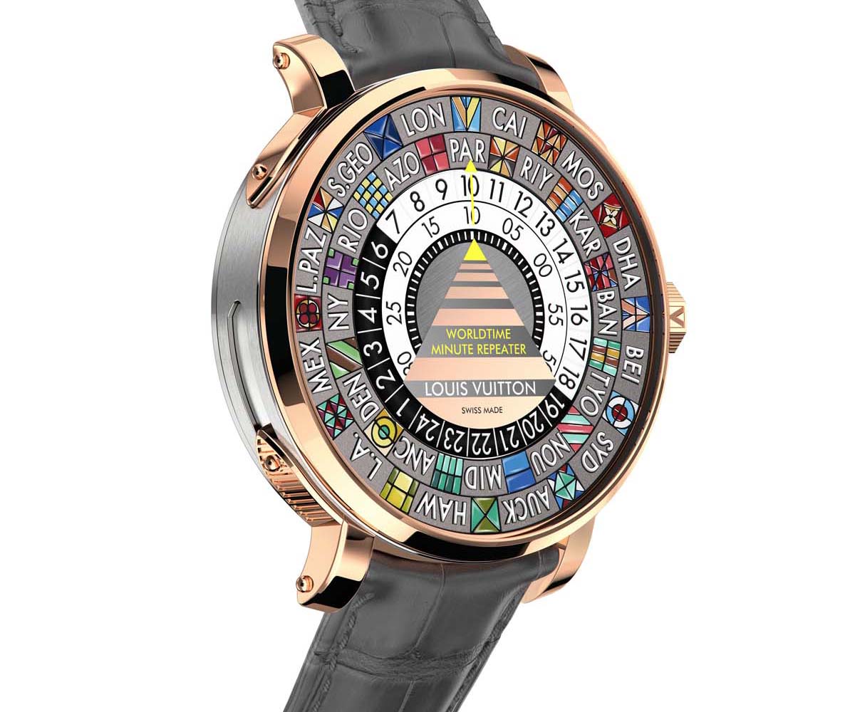 Escale Worldtime Minute Repeater–LV235手動上鏈機芯/18K金錶殼與鈦金材質/藍寶石水晶鏡面/時、分顯示,世界時區功能顯示、三問報時/動力儲存100小時/價格 約NT$9,900,000