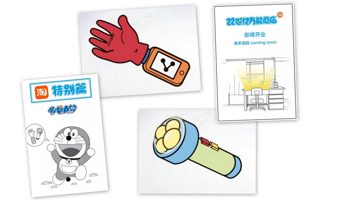 當無所不能的哆啦A夢碰到萬能淘寶會激盪出什麼火花?淘寶網宣布與知名動漫品牌哆啦A夢合作,廣受消費者喜愛的哆啦A夢將成為「萬能淘寶」形象代言人,推出各項慶祝活動。自7月15日至21日止,淘寶網將攜手哆啦A夢推出「萬能週」活動,消費者可於「來自22世紀萬能商店」買到漫畫中來自未來的道具,如時光機、記憶麵包、竹蜻蜓等。目前已經上線的哆啦A夢專屬手機淘寶App,從推送聲音、首頁風格都大幅更新,淘寶網更以哆啦A夢道具為靈感,特別研發推出四大功能「試妝魔鏡」、「砍價刀」、「放大燈」以及「分享之手」,帶來全新消費體驗。