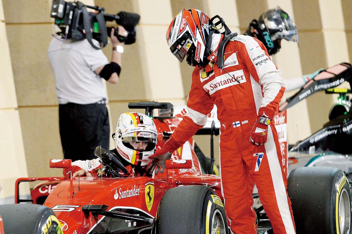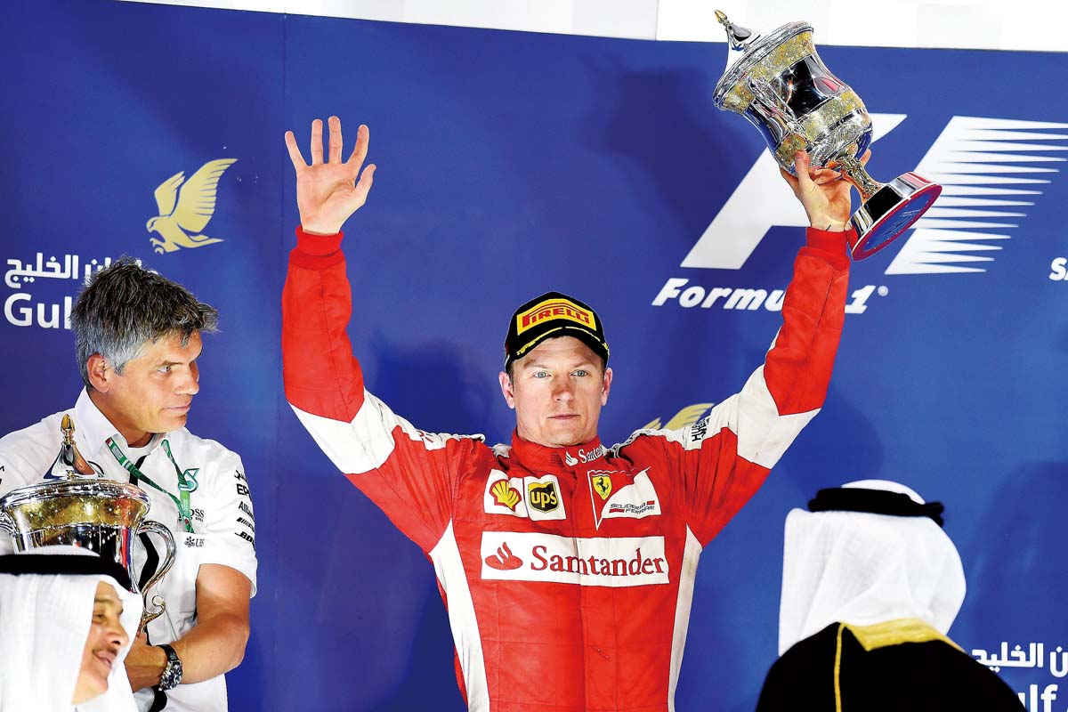巴林站,Raikkonen睽違561天再度站上頒獎台,若以Ferrari車手身分來說,更是睽違2044天!自此,今年兩名Ferrari車手終於都上過頒獎台(儘管本季到當時只有四人上過頒獎台)。紅軍當然士氣大振,甚至提前完成了進化版的新引擎,據稱提昇達20~30匹馬力(Mercedes車隊董事Lauda則認為提昇有45匹,但總之已經差不多將動力差距追平,剩下的只有車身和車手的問題)。