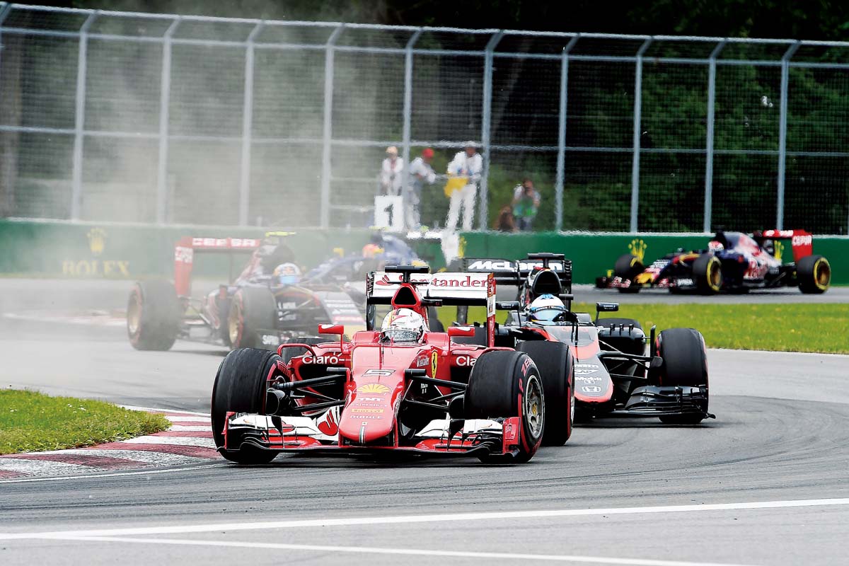 | 加拿大站Vettel起跑排位虎落平陽,賽中還被這個座位的前主人Alonso咬了一陣。 |