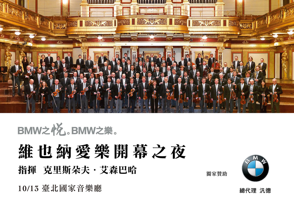 睽違11年,全球三大頂尖交響樂團之一的維也納愛樂樂團再度來台演出,由鋼琴、指揮大師克里斯朵夫‧艾森巴哈領軍,呈獻莫札特經典歌劇作品《費加洛婚禮》序曲作為開場,為樂迷帶來今年最盛大、最值得朝聖的的音樂饗宴。在台推廣藝文活動不遺餘力的BMW總代理汎德公司為了讓廣大的樂迷能夠親臨現場感受維也納愛樂樂團的魅力,將在今年10月13日(二)於臺北國家音樂廳獻上獨家贊助的「維也納愛樂開幕之夜」。