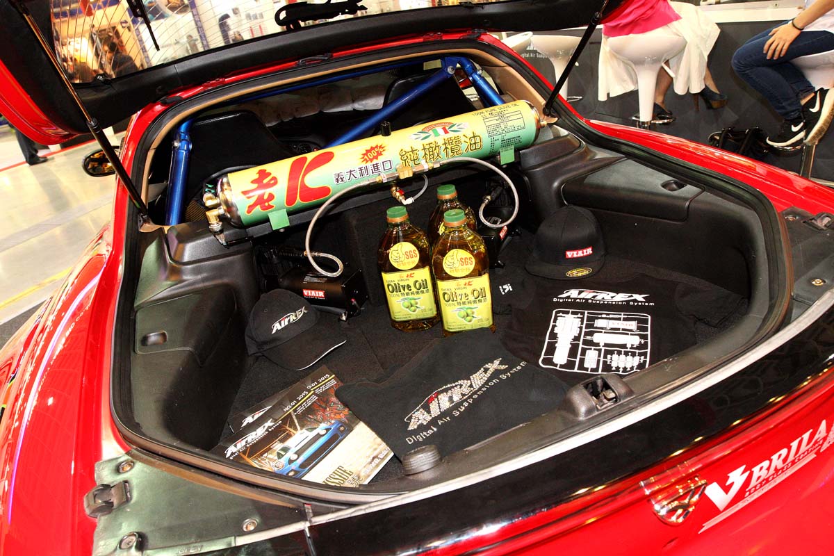 隨著產品品質獲得許多改裝大廠的認可,AirRex的氣壓避震器迅速在國際市場開拓知名度與銷量,這次特別用閃電麥坤號來主打,只不過後備箱的老K牌純橄欖油也令不少廠商驚艷,成功創造新話題。