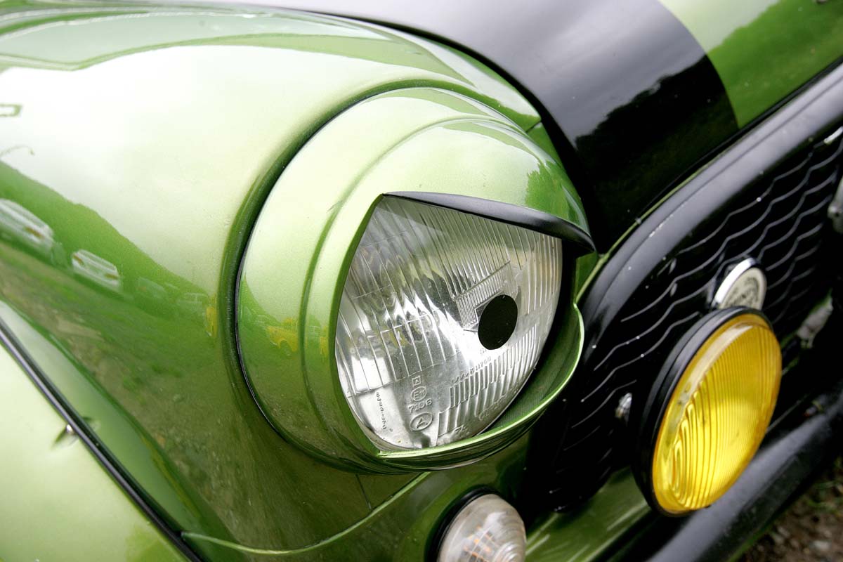 | 燈眉可以賦予車輛不同的表情,而這輛Austin Mini正在「生氣」。 |