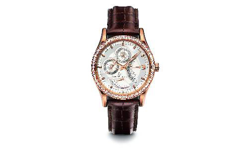 這款寶齊萊Carl F. Bucherer出品的「曼帝洛兩地時區回撥」腕錶,精巧的機械構造與細膩的實用功能,都兼顧了愛錶人的需求,40m的錶徑大方而時尚,尤其適合即將結婚的新人,18K玫瑰金錶殼上鑲了64顆總重達1克拉的真鑽,襯托潔淨的白色面盤更加閃耀,不但意義非凡具有珍貴的收藏價值,功能性也是不同於一般手錶,搭載了自動上鍊機芯,錶盤上除了鏤空的指針,還有星期、第二時區和動力儲存扇形視窗顯示,功能雖多卻能平衡細膩的分佈在面盤上,3點鐘位置的「日期逆跳」,還能欣賞機械工藝的奧妙及指針瞬間飛返的愉悅,建議售價$NTD.745,000元。