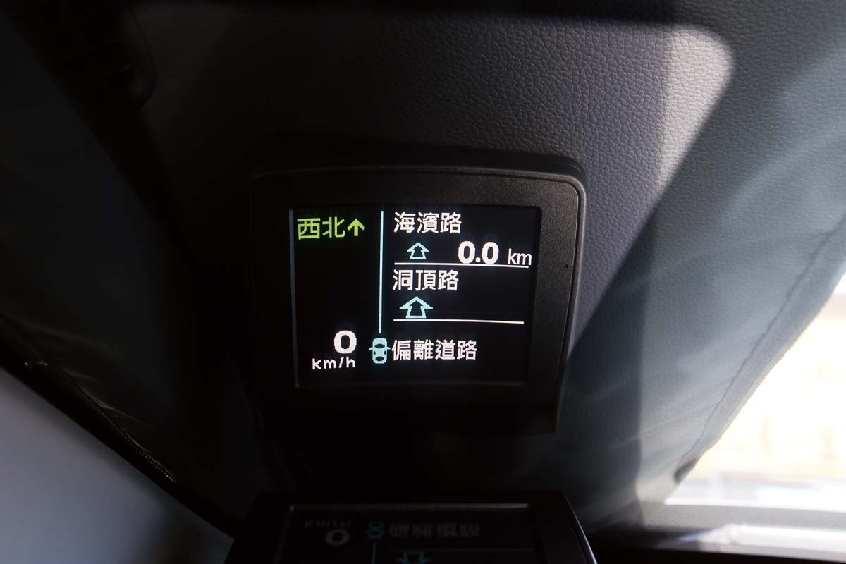 | 雖未配置抬頭顯示,但消費者可自行進行選購,該抬頭顯示器具有時速與導航顯示功能。 |