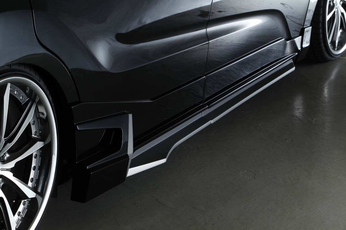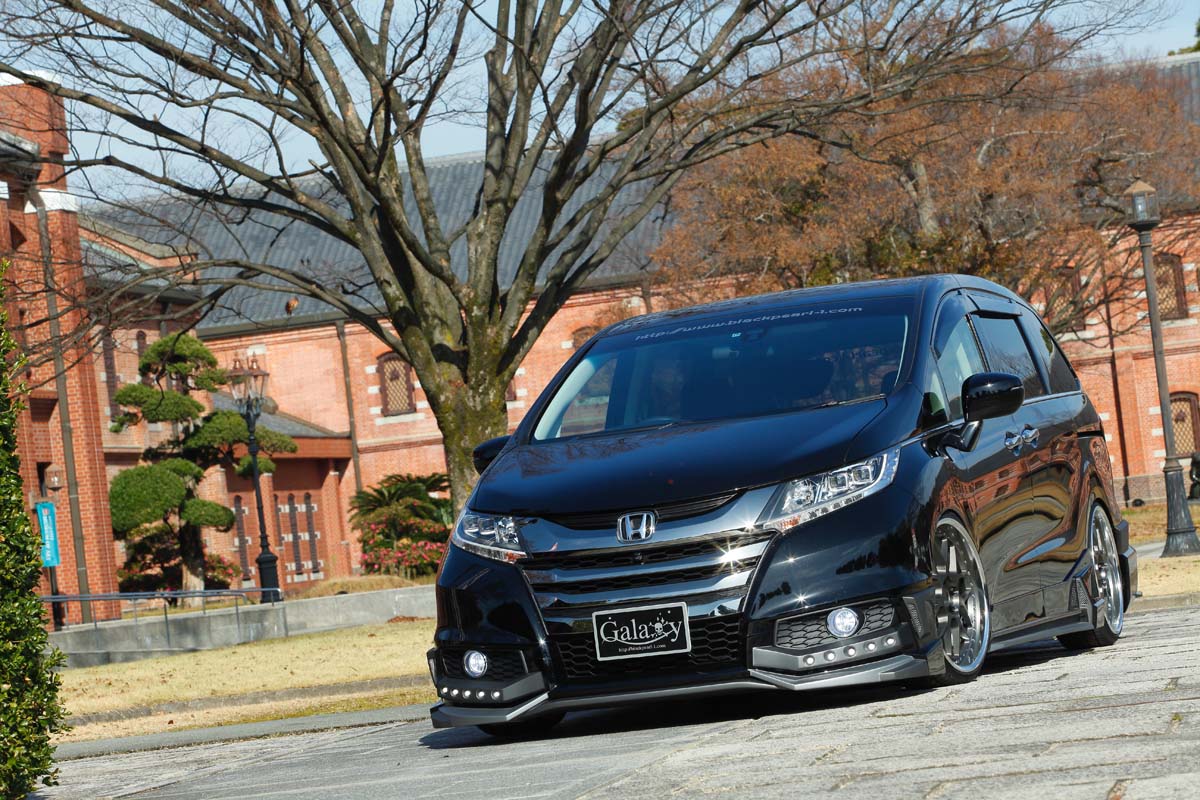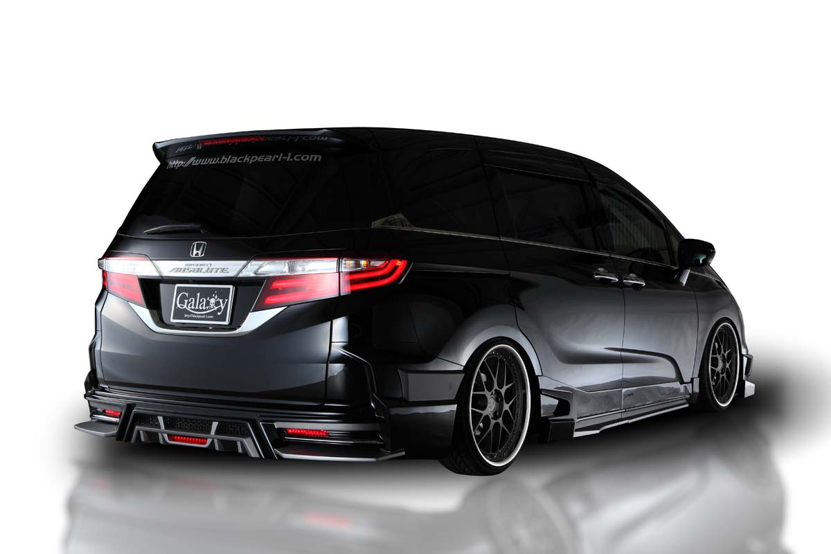 第五代Honda Odyssey的車頭超有型,鍍鉻水箱護罩下方再加上三片鍍鉻飾板,看起來相當時尚且科技感,而Black Pearl保留了這些設計元素。Black Pearl將此套件命名為Galaxy,依照台灣空力套件的說法,Galaxy算是中包套件,也就是保留保桿上半截,Black Pearl除了加上下擾流板之外,也在兩側霧燈下方各加裝5顆LED燈,使車頭造型看起來更為低伸、有侵略性;車身側裙部分刻意在後輪前方做了誇張造型設計,頗有太空船的感覺,車尾改裝方式大致上與車頭相同,下擾流板直接從保桿下半截接上去,最下方定風翼設計正好呼應車頭到車側的線條,讓外觀更有一致性。