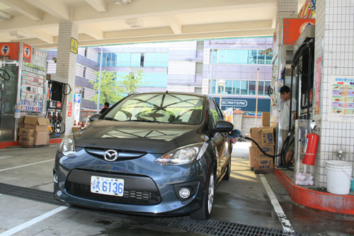 在進行油耗測試時,先將車輛的油箱加滿油,所加入的油量以油槍第一次跳起為基準。 |