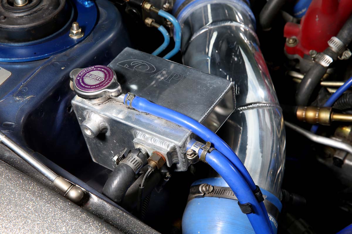 | COOLING冷卻 為了提供Garrett 3582渦輪機帶來的龐大壓縮空氣,前置中冷器選擇上Blitz中最厚的Type-K規格,266mm寬度及610mm長度直接將車頭氣壩塞得滿滿,102mm的厚度對應將近600hp的動力綽綽有餘,Apexi鋁合金副水箱穩定度更高,新品就預留水溫感應器孔位,降低剪接水管導致的漏水疑慮。 |