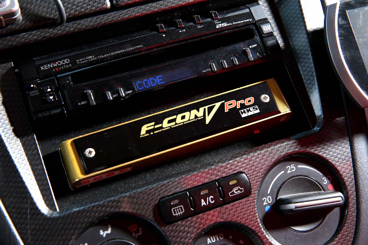 | COMPUTER 可程式電腦 俗稱機王的「HKS F-Con V Pro」,最大的優點就是在日系改裝車上擁有對應多、更合身的設定優勢,並且可透過Map的追加廢除原本擾人的空氣流量計,而該車的設定則是交由F1 Motorsports kaki施以撰寫,在引擎狀況相當健康的條件下,最大增壓值設定在1.83bar輕鬆突破500hp大關,不過一般路上車主僅敢使用1.6bar約8成的實力。 |