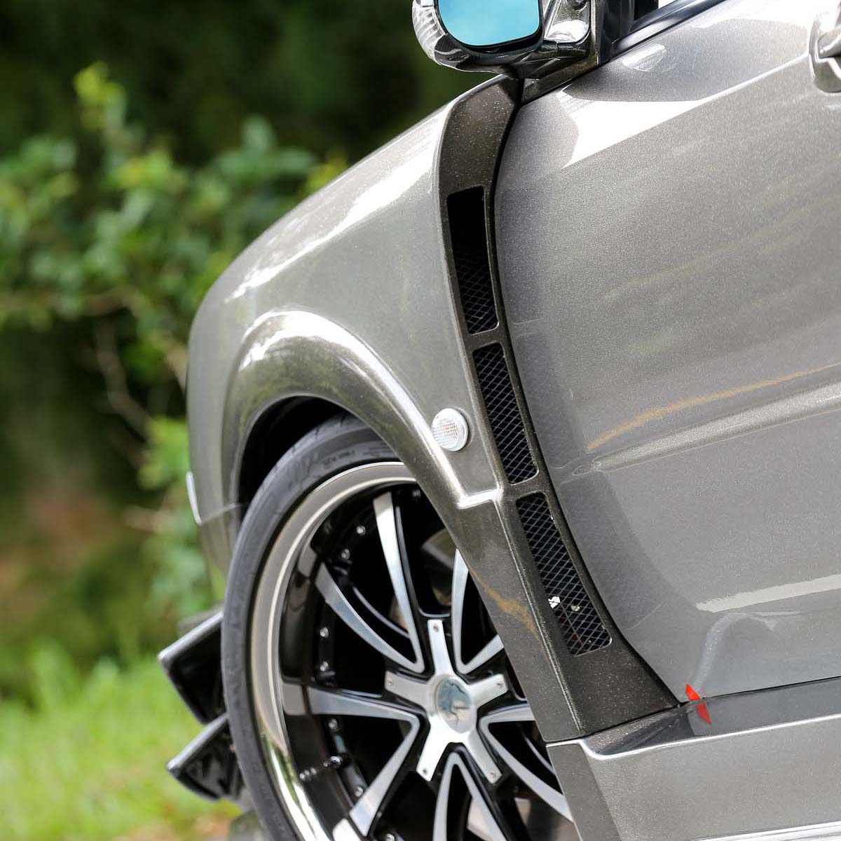 | AERO PARTS 空力套件 由於車主從小受到美式教育的引響,車輛外觀則也是選擇濃厚美式風格的Charge Speed寬體套件,前葉子板單側較原廠多出20mm寬度,後葉子板則更是誇張,兩側合計較原廠多出50mm的寬度,且光看前葉子板故意爆出的放肆設計,就讓人感到彷彿在看玩命關頭般的錯覺,搭配上大量金蔥塗裝,光線角度的改變都帶來不同的面貌。 |